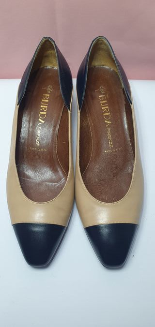 Eleganti scarpe Burda Firenze in pelle, perfette per completare il tuo look. - Design bicolore beige e nero. - Realizzate in Italia. Vendo eleganti scarpe da donna numero 38, marca Burda Firenze. Modello a punta tonda con tacco comodo, realizzate artigianalmente in Italia. Design bicolore beige/nude con punta e dettagli neri. Interamente in vera pelle, incluse le suole in cuoio. Ideali per chi ama la qualità dei materiali italiani e lo stile rétro chic. Disponibile per spedizione o consegna a mano.