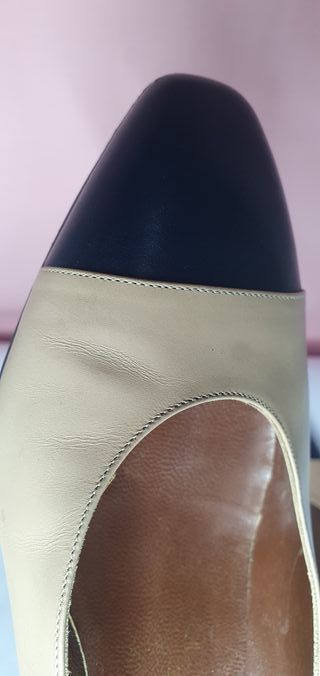 Eleganti scarpe da donna in pelle, usate in buone condizioni, vedi foto. - Modello bicolore con punta marrone. - in pelle per un comfort duraturo e di qualità. Vedi prezzo originale in foto.