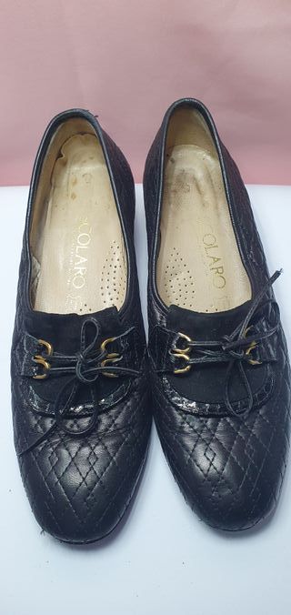 Scarpe Scolaro Pelle Nera Trapuntata Vintage