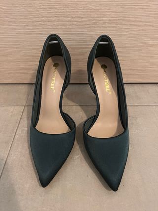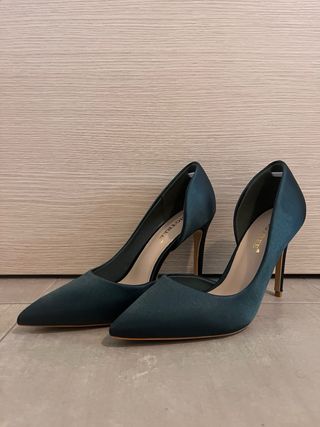 Eleganti décolleté in una bellissima tonalità verde smeraldo. - Materiale satinato - Design a punta - Modello d'Orsay - Elegante apertura interna - Altezza tacco 9,5cm - Nuove mai utilizzate!
