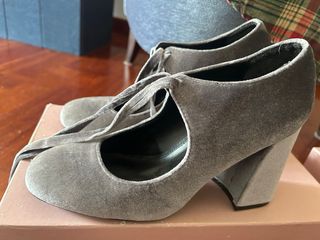 Eleganti scarpe in velluto grigio con tacco. - Materiale: velluto - Colore: grigio - Dettaglio: lacci
