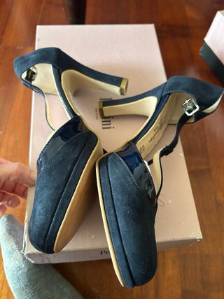 Eleganti scarpe da donna con tacco a zeppa cm 7 in pelle scamosciata blu notte n 39 regolare- Comode . cinturino regolabile - fondo in gomma antiscivolo- perfette per completare ogni outfit - Materiale scamosciato blu. - Dettagli in vernice lucida. - Cinturino regolabile alla caviglia.