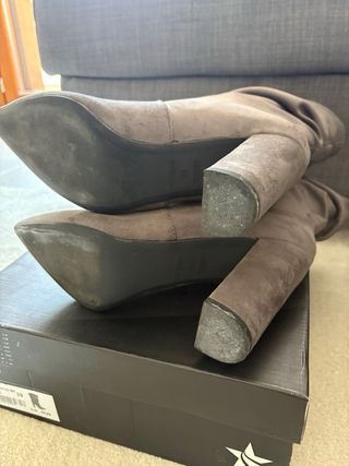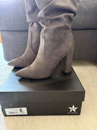 Eleganti stivaletti con tacco alto. - Materiale scamosciato. - Punta affusolata. - Design slouchy. Utilizzato una sola volta Completo di scatola e carta