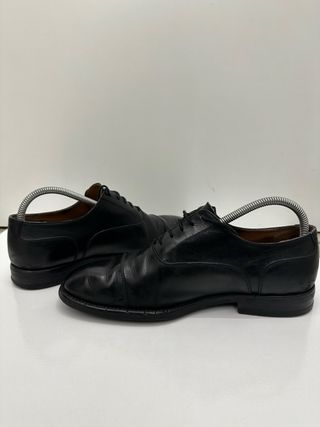 Eleganti scarpe stringate da uomo Armani Exchange. - Tomaia in pelle nera lucida. - Suola in gomma resistente. - Design classico a punta tonda. - Segni d'usura come in foto, ma ancora molto comode e robuste.