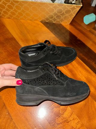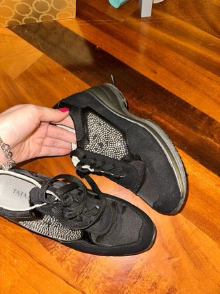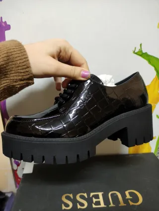 Eleganti scarpe nere con chiusura a lacci. - Dettagli traforati. - Suola spessa e robusta. Piccoli difetti visibili in foto