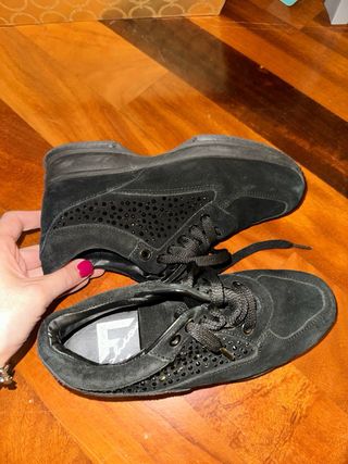 Eleganti sneakers nere con dettagli unici. - Tomaia in camoscio. - Inserti con applicazioni. - Lacci neri. - Suola in gomma.