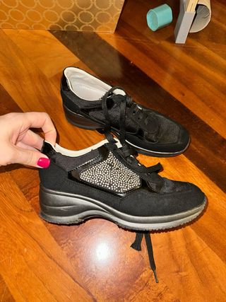 Eleganti scarpe Nerogiardini con dettagli glitter. - Tomaia in mesh e pelle scamosciata. - Inserti glitterati. - Lacci bianchi.