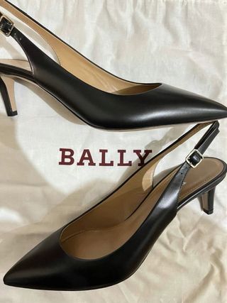 Eleganti scarpe slingback in pelle nera del marchio Bally. - Modello slingback con tacco. - Punta affusolata. - Cinturino regolabile alla caviglia.