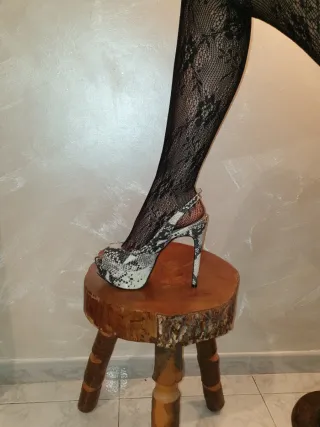 Eleganti scarpe con tacco alto e plateau, con una fantasia pitonata che aggiunge un tocco audace. Messe 2 volte per delle foto - Design peep-toe. - Cinturino alla caviglia per una calzata sicura. - Tacco sottile e slanciato.