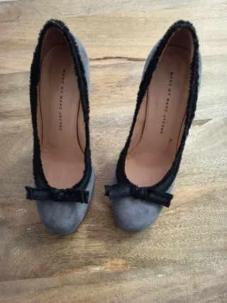 Eleganti décolleté da donna firmate Marc Jacobs. - Materiale scamosciato grigio. - Rifiniture e fiocco neri. - Logo MARC BY MARC JACOBS stampato all'interno.