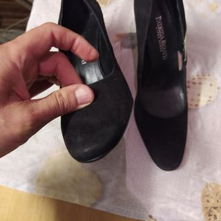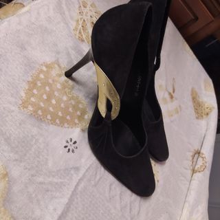 bellissime scarpe da cerimonia nuove manca solo la scatola sua in pelle scamosciata core nero con inserto dorato n 39 firmate Patrizia Rigotti tacco misura 10 cm