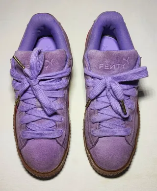 Puma Creeper Phatty Rihanna Fenty Lavender Alert Fenty le Puma firmate da Rihanna,N44 introvabili,usate poco e con cura - Tomaia in suede. - Dettagli con logo inciso. -Lacci viola con puntali dorati logati - Suola platform in gomma.