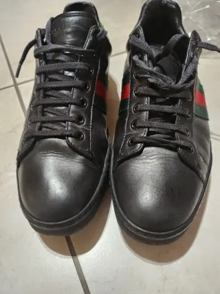 Sneakers dal design iconico di Gucci. Vendo per non utilizzo, indossate poche volte. La taglia è 8, ma calzano grandi come le Converse. Io sono 43 e ho comprato 42 apposta. Questo modello aveva un costo di 650€. Vendo per 190€, ascoltando offerte ragionevoli. Taglia 42.4/8.5. Molto comode e in eccellente stato. Combinazione di colori, verde e rosso, blu. Dettaglio del logo 77 in verde.