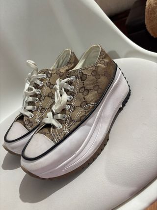 Sneakers in tela con stampa GG. - Design con piattaforma. - Lacing bianco. - Punta rinforzata.