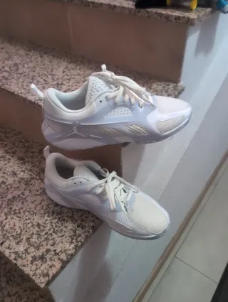 Sneakers sportive Air Jordan di colore bianco. Design moderno e leggero. Chiusura con lacci. Dettaglio del logo sul lato.