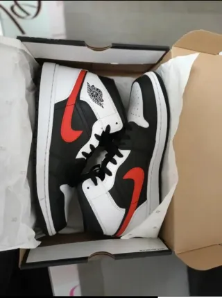 Scarpe Jordan nuove, mai indossate e nella loro scatola originale. Design iconico con dettagli in nero, rosso e bianco. Taglia 44.