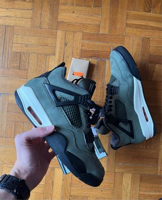 Sneakers Jordan 4 in colore verde oliva e bianco. Taglia EU44.