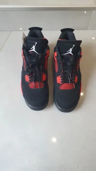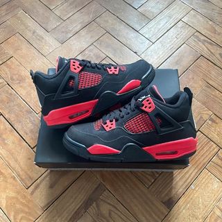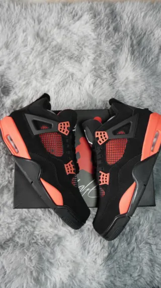 Scarpe da ginnastica Jordan 4 con un design accattivante in nero e rosso. Perfette per aggiungere un tocco sportivo al tuo stile. - Modello: Jordan 4 - Colore: Nero e rosso - Taglia: 44 - Include scatola originale