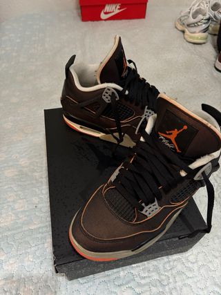 Scarpe da ginnastica Jordan 4 Retro SE, acquistate molto tempo fa ma poco usate, la taglia è molto piccola e non mi vanno bene. Costo 220€ al lancio, ora sono più costose in rivendita, le vendo a questo prezzo perché non le uso. - Design in nero e arancione. - Taglia 38.5 / 39