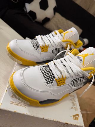 Scarpe Air Jordan 4 Retro. Nuove e originali - Design iconico. - Combinazione di colori bianco e giallo.