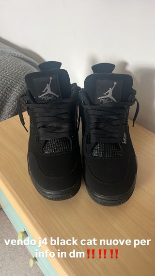 Scarpe Jordan 4 Black Cat in condizioni pari al nuovo. - Taglia 44 - Colore nero - difetto la suola leggermente sporca perché utilizzate una sola volta