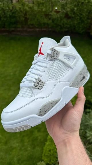 Scarpe da ginnastica Jordan 4 da uomo in taglia 44. Un design classico e versatile. Combinazione di colori bianco e grigio. Dettagli iconici di Jordan.