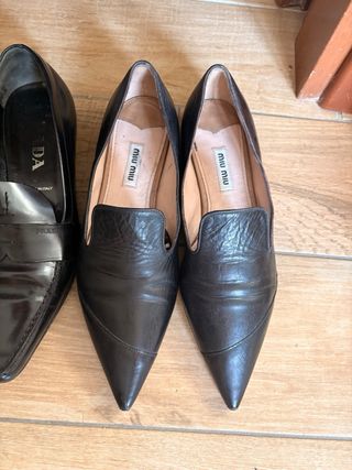 Set di scarpe eleganti in pelle nera. usate ma in buone condizioni - Un paio di décolleté Prada. - Un paio di mocassini Prada. - Un paio di mocassini Miu Miu.