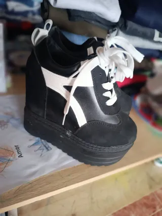 Queste scarpe con platform sono comode e presentano un design moderno. Combinazione di materiali in bianco e nero. Platform spessa.
