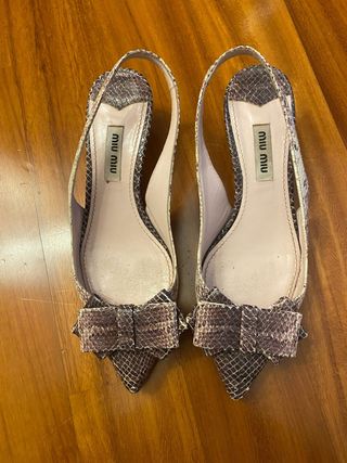 Eleganti décolleté Miu Miu con un raffinato motivo pitone. Il dettaglio del fiocco aggiunge un tocco di stile unico. - Motivo pitone su tutta la scarpa - Fiocco decorativo sulla punta - Modello slingback
