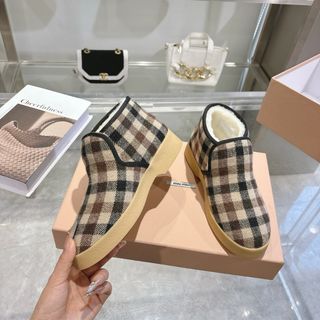 🌟Dimmi la taglia che ti serve!🌟 📢Taglia: 35 36 37 38 39 40📢 Stivaletti Miu Miu con design a quadri e interno caldo. - Stampa a quadri in toni beige e marrone. - Interno foderato in pelo sintetico. - Suola in gomma. - Chiusura senza lacci.