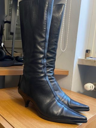 Stivali alti in pelle Miu Miu - Design elegante. - Tacco spesso (7 cm). Acquistati l'anno scorso su Wallapop, mai usati. Scatola leggermente danneggiata. Taglia 38 italiana (grande).