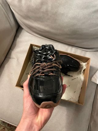 Sneakers New Balance x Miu Miu 530 in charol, Betis Glamour (finitura Canberra) con un colore nero impeccabile e dettagli in gomma. Taglia: 39 Stato: 10/10 - Nuovo con scatola originale, fodera protettiva, etichette e targhe. Prezzo negoziabile: 150 €.