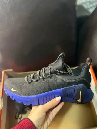 Scarpe Nike Free Metcon 6, ideali per allenamenti CrossFit. - Tomaia in mesh traspirante. - Intersuola reattiva per ammortizzazione. - Suola in gomma per aderenza. - Design bicolore nero e blu.