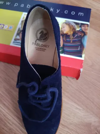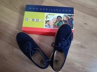 Scarpe per bambini del marchio Pablosky in colore blu. Design con lacci. Materiale in pelle scamosciata. Prodotto in Spagna.