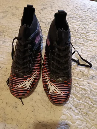 Scarpe da calcio per bambini in taglia 30. Progettate per offrire comfort e buona presa sul campo. - Chiusura con lacci rossi. - Interno foderato in rosso. - Suola con tacchetti.