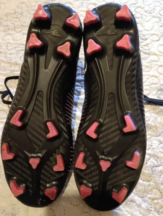 Scarpe da calcio Nike per bambini in colore rosa e nero. Progettate per il gioco. Taglia 29.5 - Chiusura con velcro. - Suola con tacchetti.