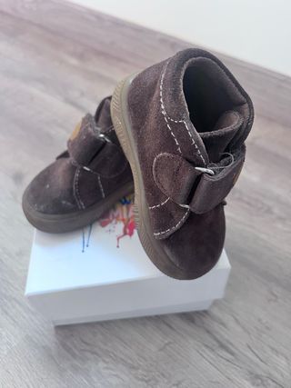 Scarpe per bambini in pelle scamosciata. - Materiale: pelle scamosciata. - Colore: marrone. - Punta bassa. - Ottime condizioni. - Molto comode. - Adatte sia per l'abbigliamento che per l'uso quotidiano, sono perfette.