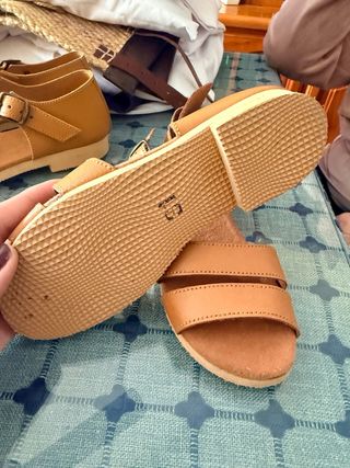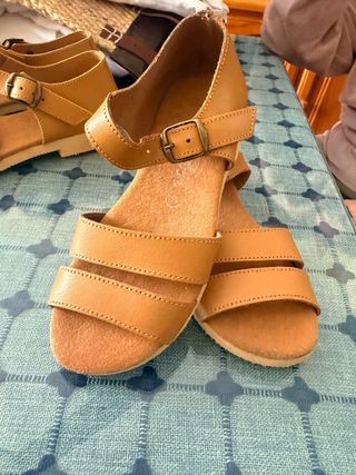 Sandali stile Nazareno per bambini. - Materiale in pelle. - Chiusura con fibbia. - Suola antiscivolo.