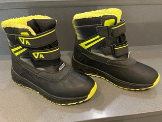Stivali da neve per bambini in taglia 34. Perfetti per mantenere i piedi caldi e asciutti nel freddo. Chiusura con velcro per un facile adattamento, fodera interna morbida e calda, suola in gomma antiscivolo, pianta estraibile.