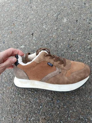 Sneakers sportive in pelle scamosciata con interno in pile. Dettaglio logo 'NYC' sul lato. Suola bianca. Chiusura con lacci.