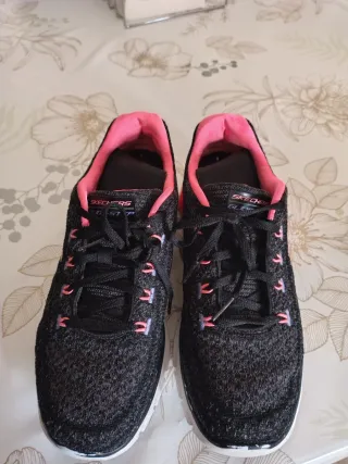 Scarpe da ginnastica Skechers da donna. Nuove con etichetta nella sua confezione originale Memory foam - Tomaia in tessuto traspirante. - Suola bianca. - Lacci bianchi.