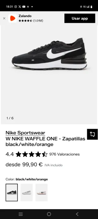Scarpe sportive Nike Waffle One per donna, in colori nero, bianco e arancione. Sono nuove. Design moderno e comodo. Suola con buon grip.