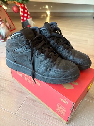 Scarpe Nike Air Jordan in pelle nera. - Design mid-top. - Tomaia in pelle martellata. - Logo Swoosh laterale.