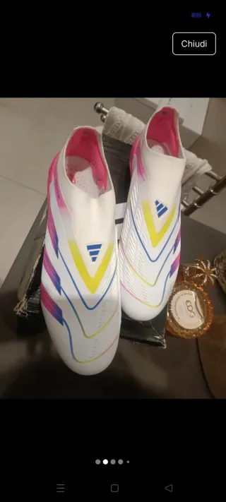 Scarpe nuovissime, senza nemmeno un graffio utilizzate una sola volta causa numero di scarpe troppo grande per mio figlio. Prezzo assolutamente non trattabile. Fate una ricerca su Google per vedere di che scarpe parliamo.carpe da calcio Adidas.