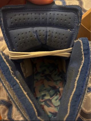 Scarpe Jordan con un design unico. - Tomaia in pelle blu. - Dettagli multicolor sulla suola interna. - Lacci bianchi.
