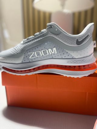 Scarpe Nike Pegasus Premium in grigio e arancio. - Design moderno e accattivante. - Tomaia in mesh traspirante. - Intersuola reattiva per un'ammortizzazione ottimale. - Suola in gomma per una maggiore aderenza.