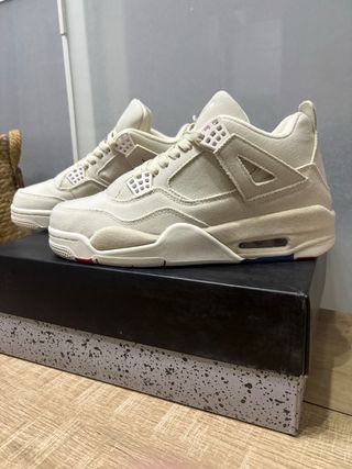 Scarpe Air Jordan 4 Retro nella colorazione Blank Canvas. - Tomaia in tela. - Dettagli in contrasto sulla suola.