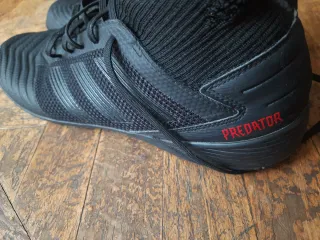 Vendo adidas Predator 19.3 da calcetto/indoor colore nero, taglia 46. Le scarpe sono in ottime condizioni e sono state usate poco, come si vede dalla suola e dalla tomaia. Volevo solo segnalare che ho fatto un piccolo taglio sulla parte posteriore del tallone su entrambe le scarpe. L'ho fatto io perché il materiale originale era troppo rigido e mi faceva venire le vesciche ogni volta che giocavo. Adesso sono molto più comode e non danno più fastidio. Per il resto le scarpe sono a posto