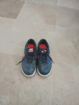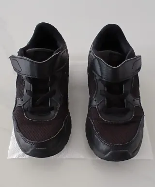 Scarpe sportive per bambini color nero. Usate ma in buone condizioni. La vernice nera sulle punte è stata cancellata. Super leggere e molto comode. - Chiusura con lacci elastici. - Parte superiore in mesh traspirante. - Suola flessibile.
