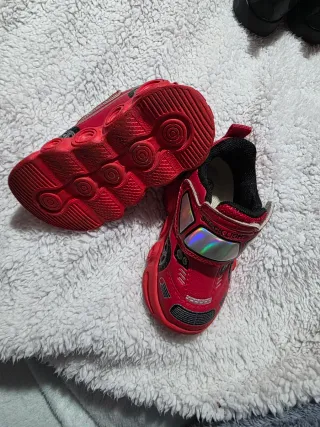 Sneakers sportive rosse per bambini, con un design accattivante. Il numero 21 fa luce, indossato un paio di volte. Chiusura con velcro. Suola in gomma. Dettaglio riflettente sul tallone.